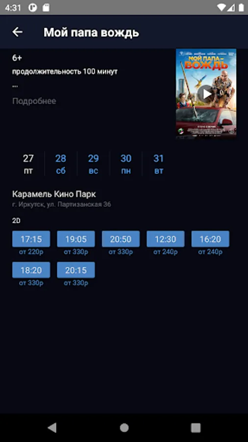 With the Caramel Kino Park application, you can purchase tickets for any screenings at the Caramel Kino Park cinema.