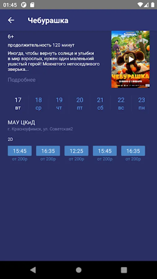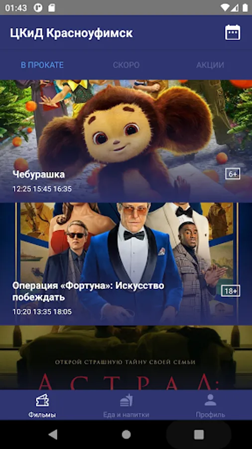 With the application "TsKiD Krasnoufimsk" you can purchase tickets for any sessions at the cinema TsKiD Krasnoufimsk.
