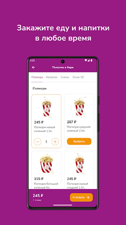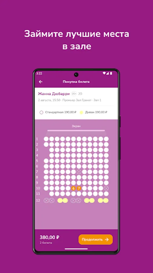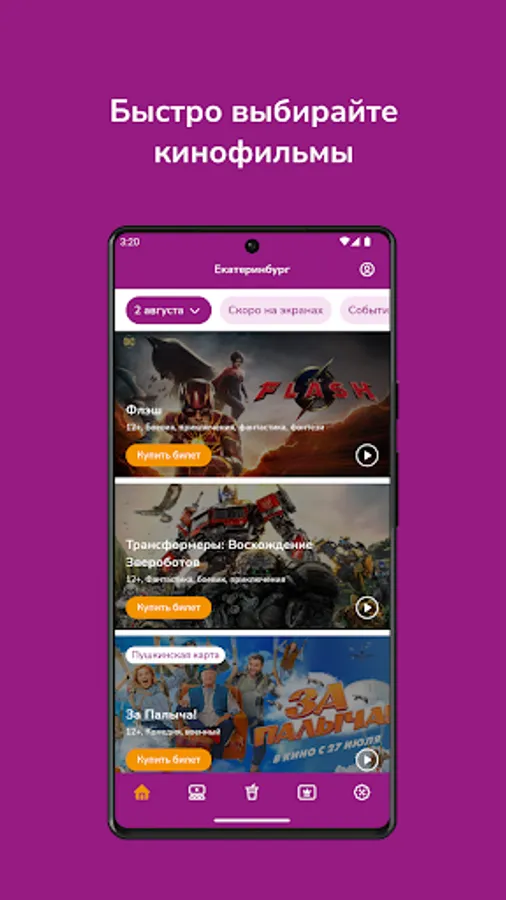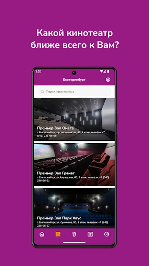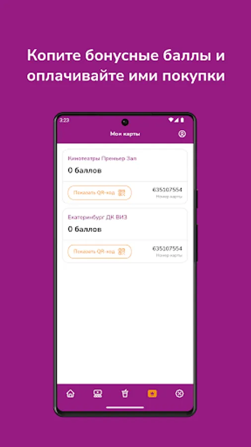 With the Premier Hall application, you can purchase tickets for any session. Ticket prices are lower than at the box office of cinemas. You can also purchase cinema bar products. For holders of the "Friends Club" bonus card, there is a possibility to write off bonuses when purchasing through the application.