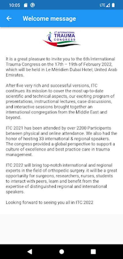 This application is meant to update users with information related to the 6th International Trauma Congress.