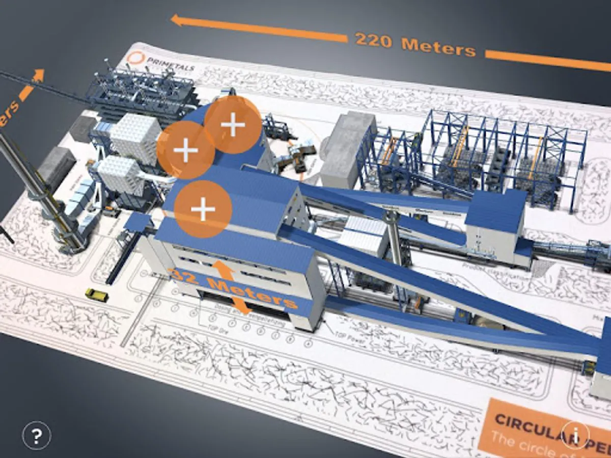This augmented reality app shows a circular pelletizing technology plant. It is by far the world’s most compact pelletizing plant and represents a milestone in minimum-cost iron production with in-house-made pellets. To use it you need a print-out of the drawing that you find in the section of this app on following webpage: primetals.com/apps