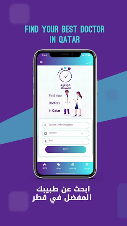 MAWAIID, your essential platform to find and book appointments with centers and doctors in Qatar. Browse profiles of doctors, filter your requirements and choose your favorite doctor. You may search and filter doctors by center, name, gender, specialty, treatment.