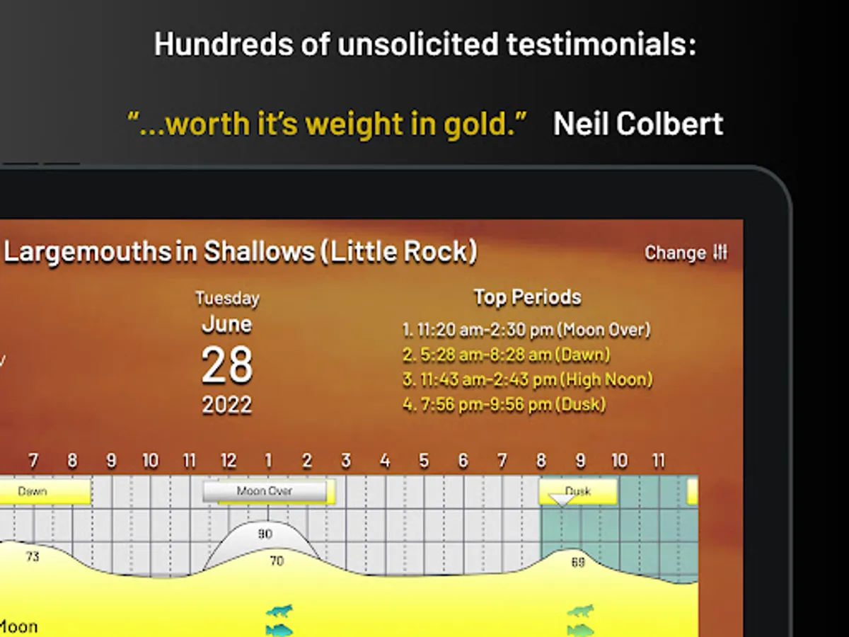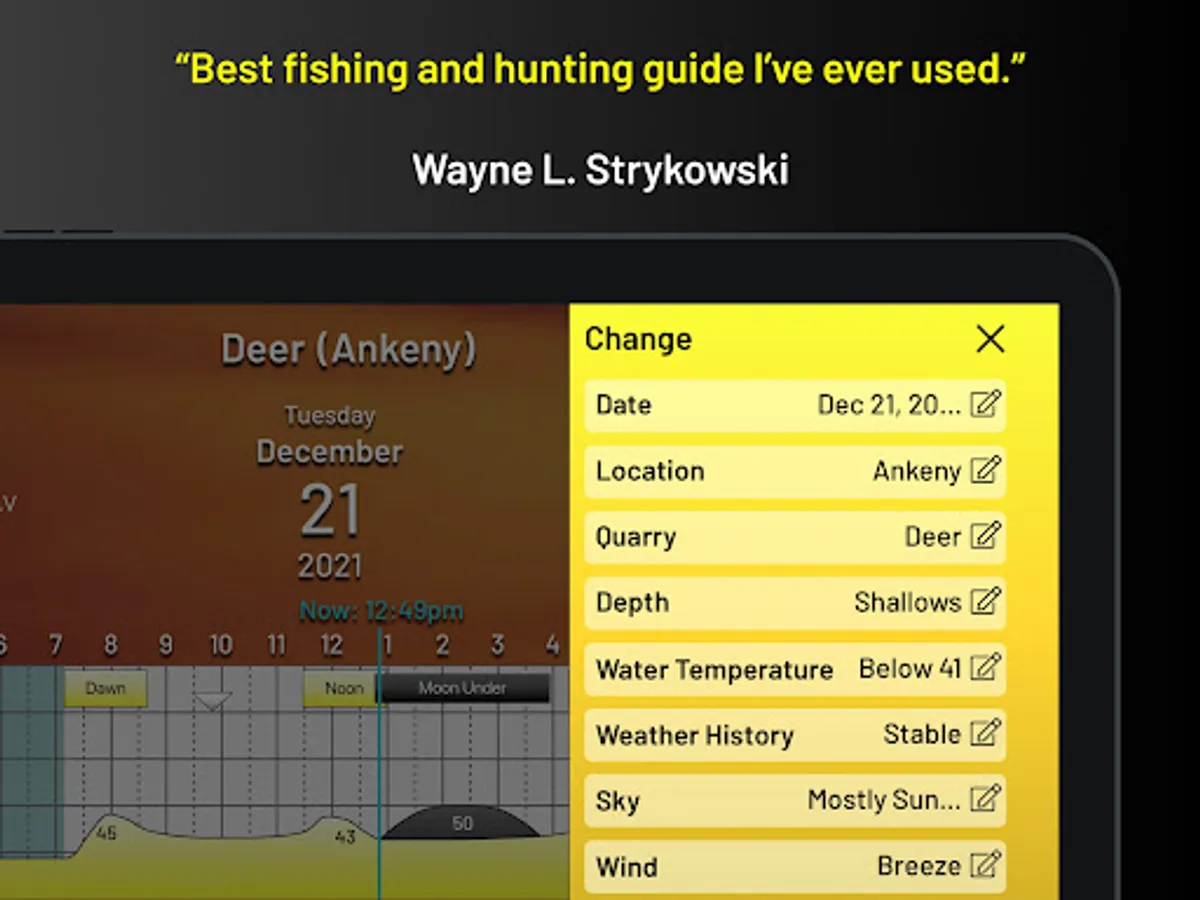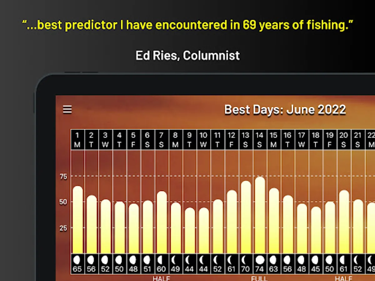 The PrimeTimes system, found in four different calendars and explained in its popular book, How to Know When to Go, has been the gold standard of when to go fishing and hunting since 1986. And its Ultimate PrimeTimes software has been number-one since 2001. Now as an app, Ultimate PrimeTimes truly is the ultimate in forecasting fish and game activity, as it offers 23 choices of what you are going after, from bass, walleyes, and offshore…to deer, waterfowl and coyotes. It adjusts to your exact location via GPS. It even fine-tunes to your current fishing conditions, including today's weather and water conditions! This interactive forecaster is loaded with features and very easy to use. Its data goes back as far as 2005, so you can check its predictions against past outings.