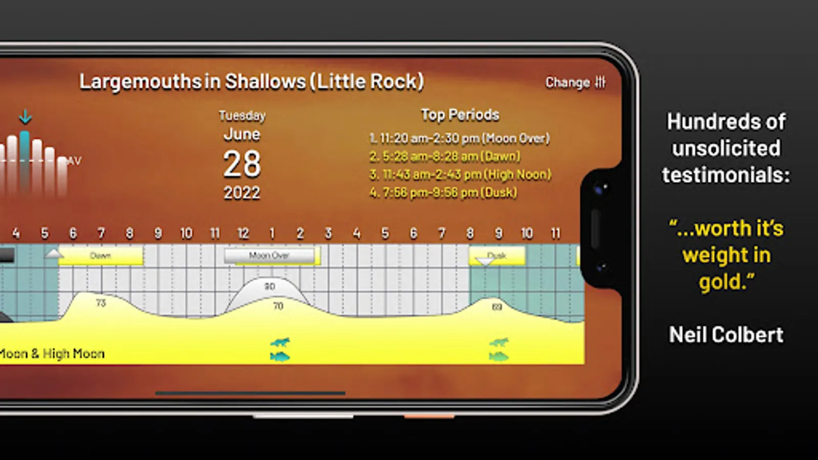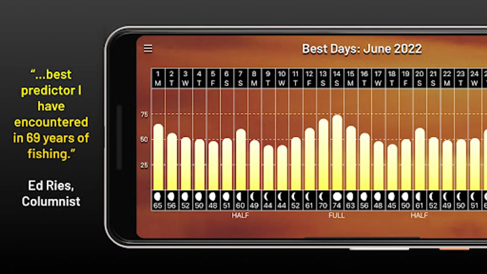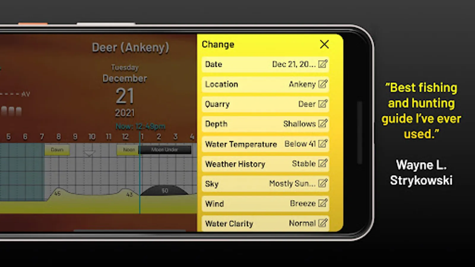 The PrimeTimes system, found in four different calendars and explained in its popular book, How to Know When to Go, has been the gold standard of when to go fishing and hunting since 1986. And its Ultimate PrimeTimes software has been number-one since 2001. Now as an app, Ultimate PrimeTimes truly is the ultimate in forecasting fish and game activity, as it offers 23 choices of what you are going after, from bass, walleyes, and offshore…to deer, waterfowl and coyotes. It adjusts to your exact location via GPS. It even fine-tunes to your current fishing conditions, including today's weather and water conditions! This interactive forecaster is loaded with features and very easy to use. Its data goes back as far as 2005, so you can check its predictions against past outings.