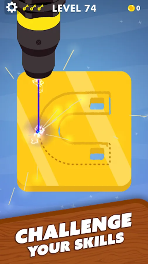 The closer you get to the 100% resemblance between the model and your cut, the bigger your coin reward is. With the winning parts, you can enjoy new skins for your laser, for your radius (plasma, electric, etc.) or even your support. On the other hand, keys will be present on the cutting lines. When you pick them up, you can open chests in which coins and skins are hidden. Our skins can't be bought with money and can only be obtained by playing.