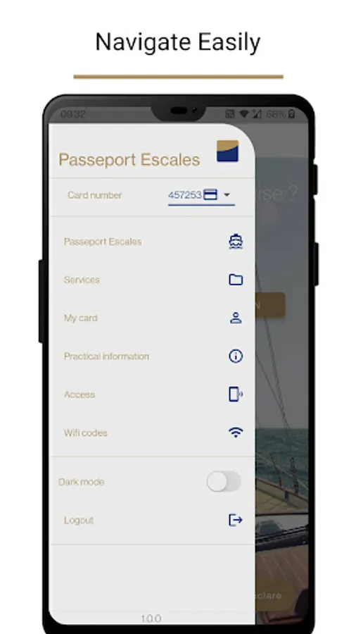 The Passeport Escales Application is reserved for holders of a Passeport Escales card. This card is given by member ports to their yachtsmen. Log in using your Passeport Escales account. Once downloaded, the Application allows you to declare your cruise intentions, make your access requests and access your personal data.