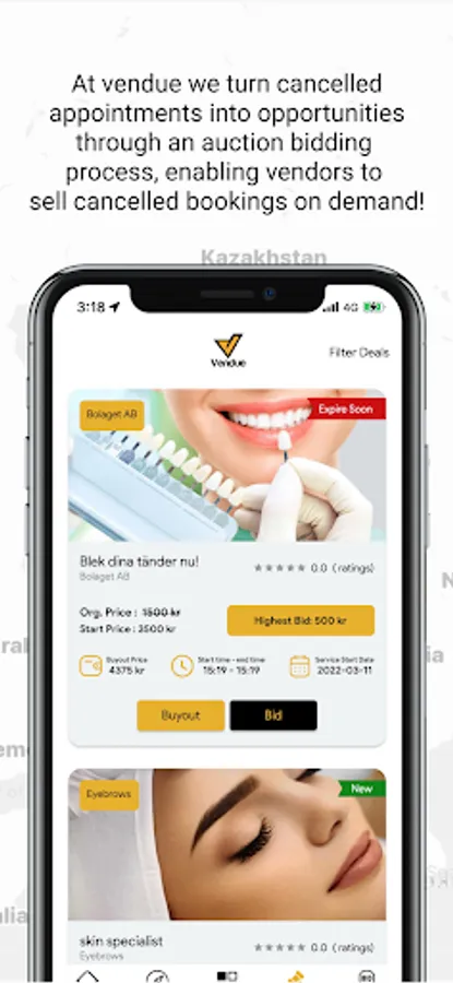 App long description: At Vendue we offer a new landscape of choice as consumers can browse the Vendue platform for posted cancellations and secure deals – up to 15 minutes before they were initially scheduled to take place.