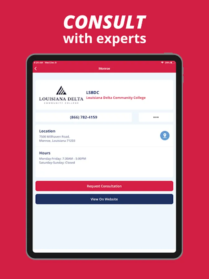 Request Consultation within the app or visit our website at www.louisianasbdc.org.