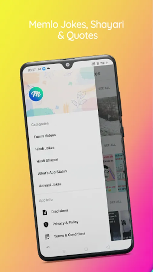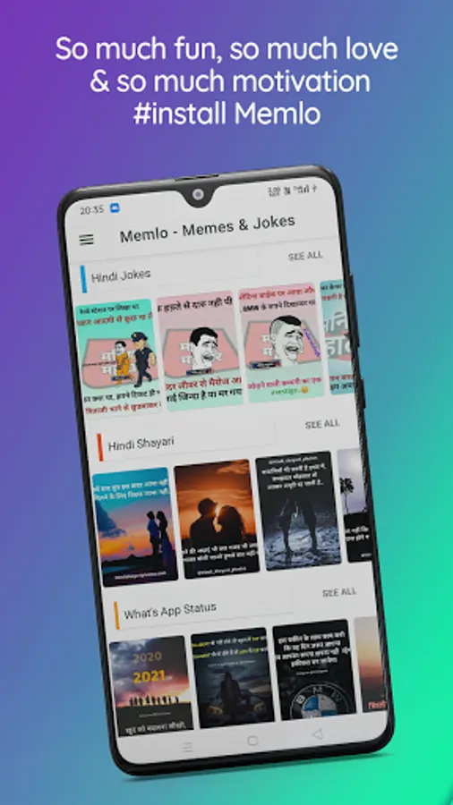 Memlo app also provide 2021's best funny hindi jokes,hindi shayari and also motivational quotes and has an fabulous collections of alll the categories.And all the jokes are so funny.