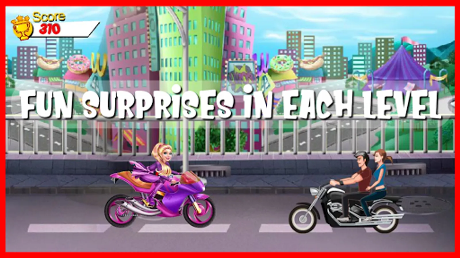 Spy Racer Sophia drives his super-fast violet motorbike as a madman in speedy traffic.