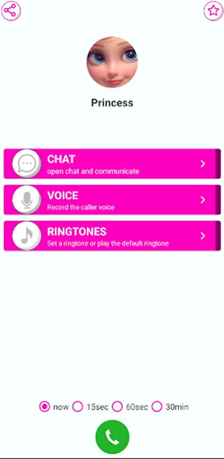 Princess call and chat is a simple and easy Princess Elssa for you to make a fake call with A For Princess and chat with her directly, enjoy calling your favorite A For Anna actor and chatting in an easy way, don't hesitate and download this A For Anna call app for fun and prank your friends.