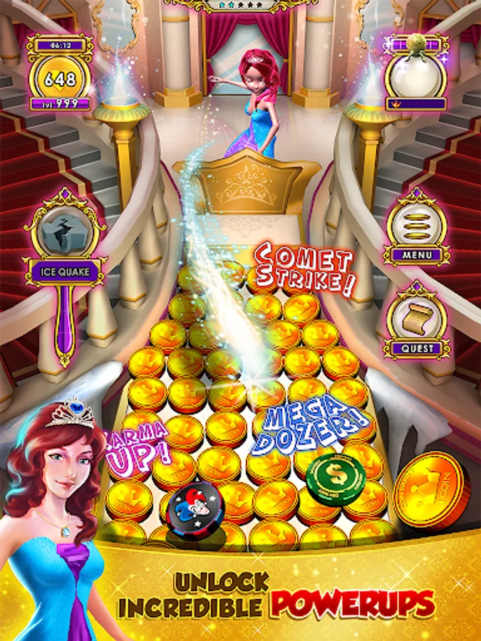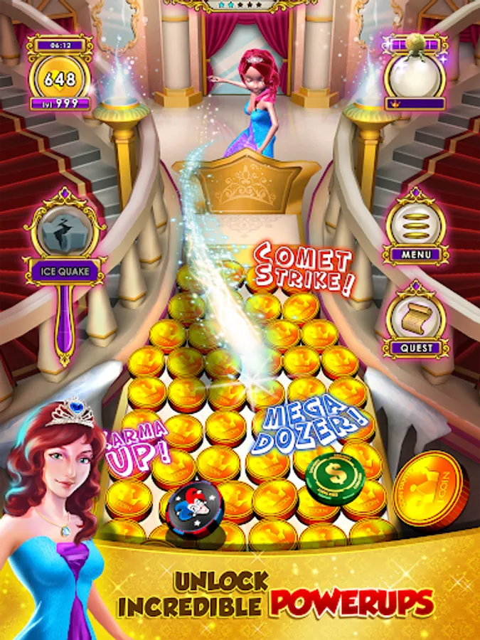 In the lively community of Princess Gold Coin Dozer, track your progress compared to others and strive to unlock all achievements, aiming to become the ultimate COIN MASTER. Enjoy uninterrupted gameplay with minimal ads, appearing only when you choose, and granting you additional coins, power-ups, spin tokens, and more. Immerse yourself in the excitement of Princess Gold Coin Dozer, and let the adventure unfold!