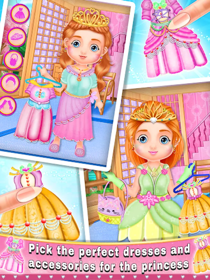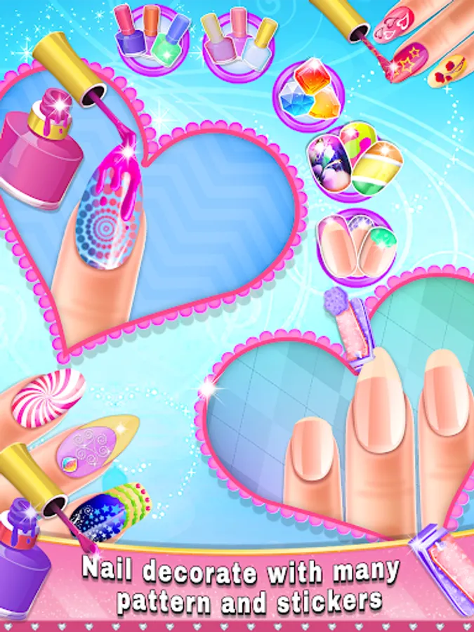 Trim the nails of your princess, and choose from loads of polish colors and decoration full and half patterns and apply many sticker for nail decorate. Let your inner nail artist out!