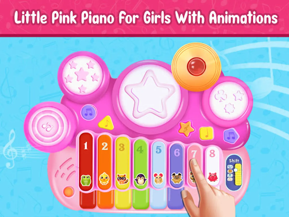Each pink musical instrument has real instrument sounds. Use your imagination freely to compose your own music with different musical instruments. Play Digital toy piano, with professional sounds quality, correct pitch and accurate tones.