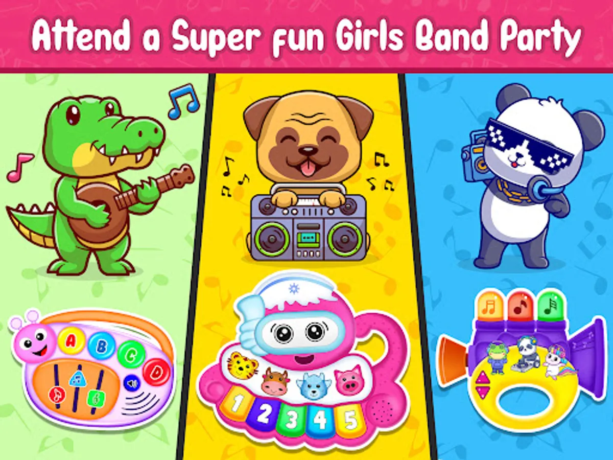 Enjoy Educational Musical Piano Toys. Includes Pink Electronic Musical Instruments with colorful animations. Explore Soothing music, with pink and cute instruments ! Girl Games to play and develop musical talent. Dolls, grow your collection of virtual musical instruments and play with musical toys!