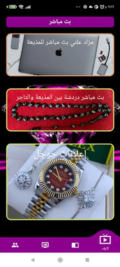 It also has an auction. It is shown daily as a live broadcast with the broadcaster, and users can publish their ads with distinction and creativity. Only the product name and price are downloaded, and the sale is done through the application management. The application also provides an electronic payment gateway in the platform, through which sales and payments can be made through the application management.