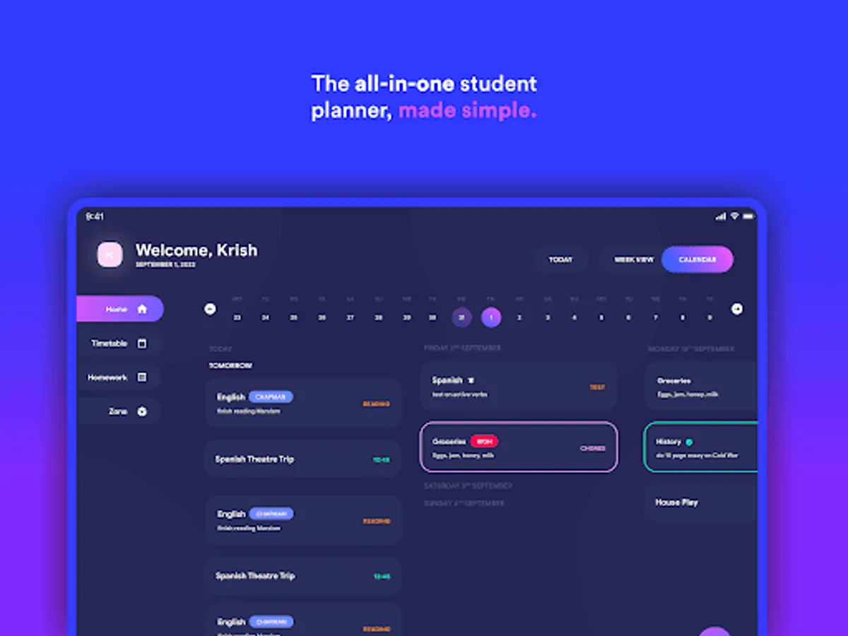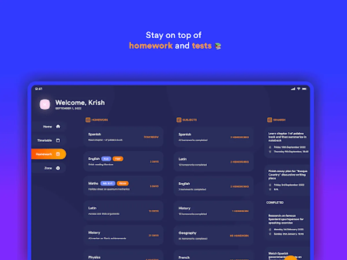 Whether you are attending elementary school, high school or college, Classify is the only organisation app you’ll ever need. Getting down your homework, managing your timetable, events and clubs, plus a distraction-free space to stay focused, all in one app. ⚡
