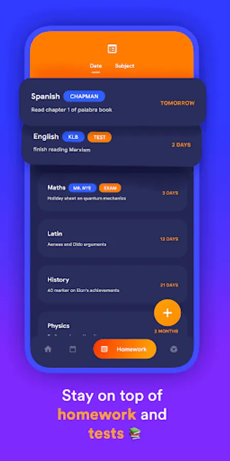 Our digital homework diary means you will never forget to do your homework. Add details including the type of homework, what teacher has set it, add files and images, set reminders to not miss the deadline and more!