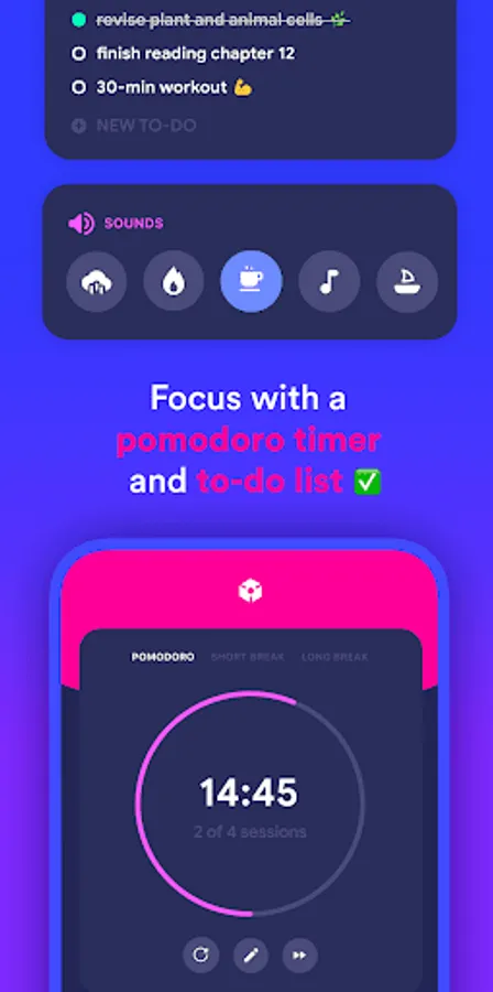 Stay fully focused with help of our latest feature, Zone, which helps you stay concentrated and stop procrastinating, leaving more time to do the things you love most. With an integrated pomodoro timer, curated study playlists and to-do lists, you can get more work done, in less time.