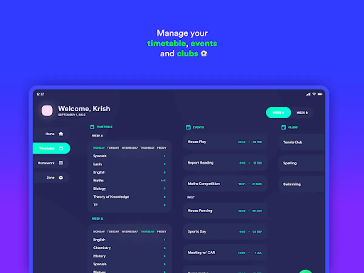 Quick and easy to set up, Classify’s intuitively-designed timetable means you will know exactly where to be and at what time. With flexibility and personalisation at its core, the timetable helps you know exactly what your day looks like — so forget roaming around the corridors cluelessly on your first day of school. Now supports alternating timetables.