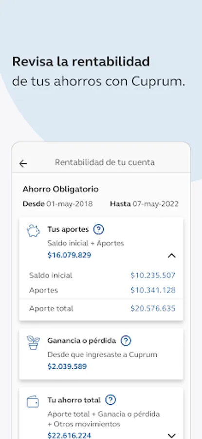 -Know the profitability of your account. You can check the profit or loss you have obtained since you entered Cuprum in Obligatory Savings and APV.