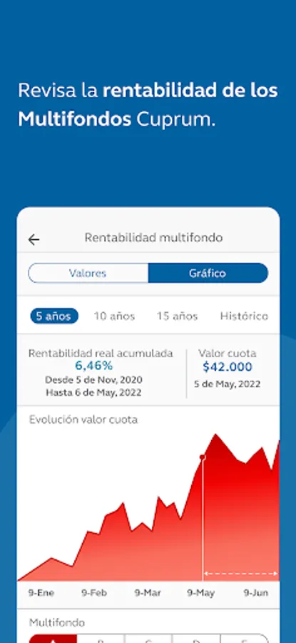 Make everything easier and simpler with your Cuprum App! A tool that you will have available to review your savings at any time, so that you can access your AFP information from anywhere. We are the best evaluated App within the AFP industry.