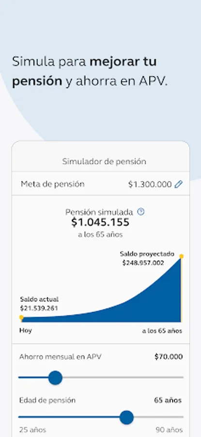 -Save to improve your pension. With your App you can simulate your pension and establish a monthly discount to save on APV.