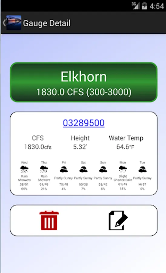New version has a much improved user interface. Allows you to add new gauges by searching a list of all USGS gauges. Displays weather local to the gauge. Provides CFS, gauge height, and water temperature on gauges where data is available. Data is retained when you leave all cell service areas.