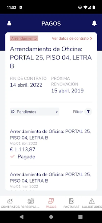 You can consult the most relevant of your lease data, the status of pending payments and utility documentation relating to your lease
