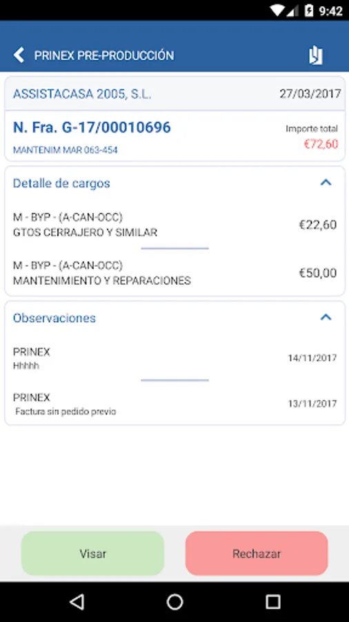 With this app the user can perform mobility visas and firms whose invoices received approval and monitoring circuit is managed by routes Prinex Work Flow module.