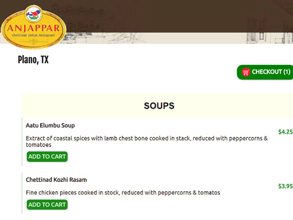 Anjappar Plano is the official mobile app for Anjappar @ Plano, TX. It allows for its very important patron like yourself to view the menu and order online.