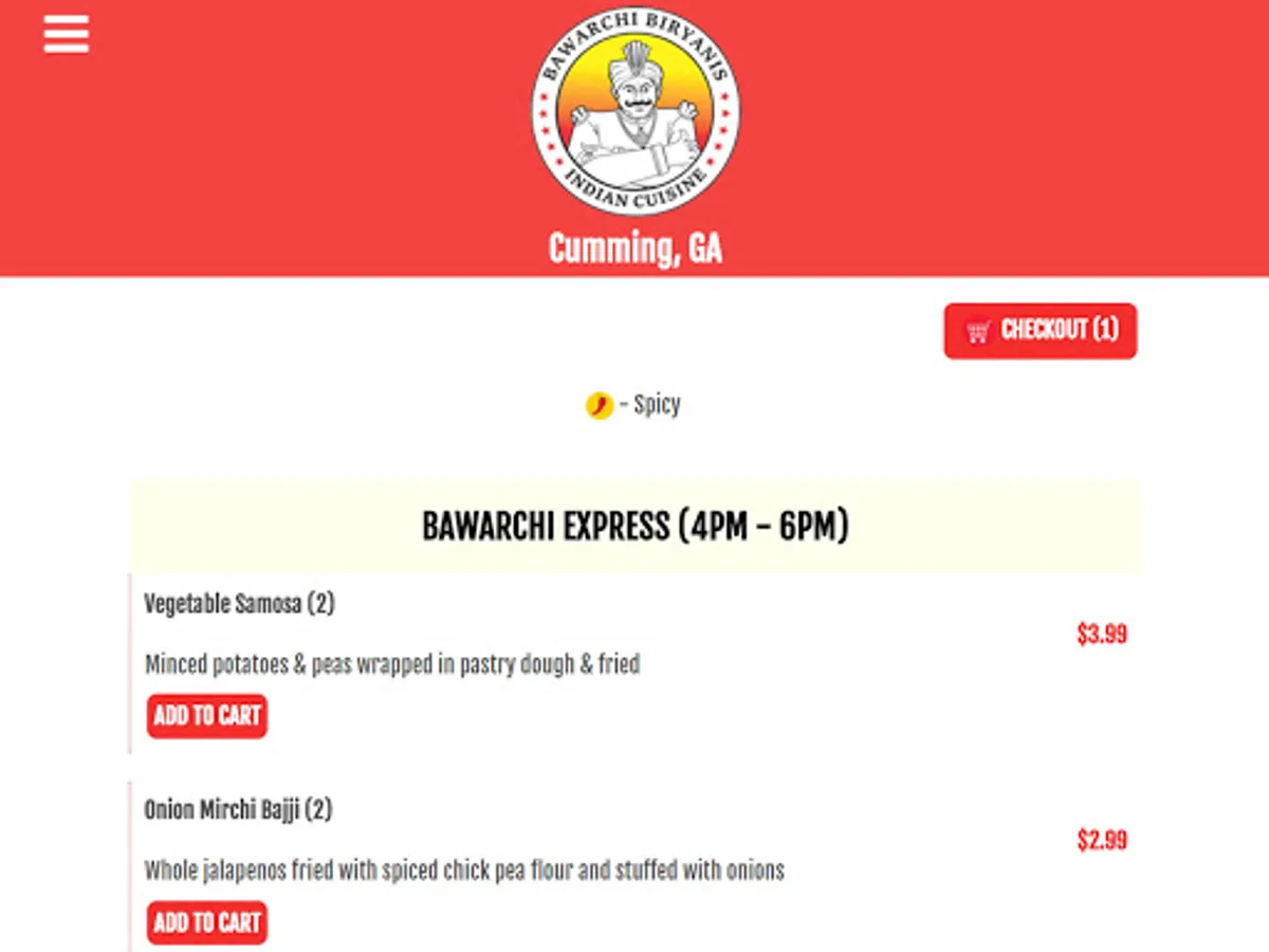 Bawarchi Cumming is the official mobile app for Bawarchi Biryanis @ Cumming, GA. It allows for its very important patron like yourself to view the menu and order online.