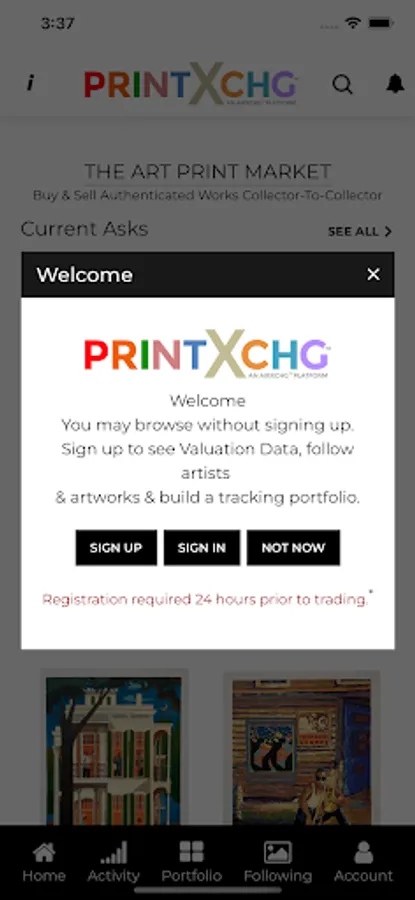 - PRINTXCHG BUYERS PAY LESS - SELLERS GET MORE. Until printXchg, resales took place at auction houses or on consignment sites at 35%+ spreads, or on online auction sites with no guarantee of authenticity. PrintXchg collectors offer prints directly to buyers. Buyers bid for them or ask for prints not yet offered, both guided by free market pricing data. When they cross, the sale happens automatically at two-thirds lower transaction costs than traditional channels, with certified authenticity.