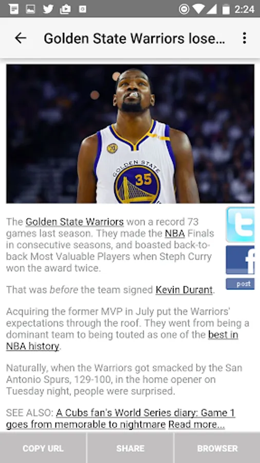 We know many of you like to share what you've been reading with your friends and social circles. To this end we've added sharing options to each post allowing you to quickly open up conversations about any topic on any social media application you have installed. This will not just share the link to the post but also the title and the best available image.