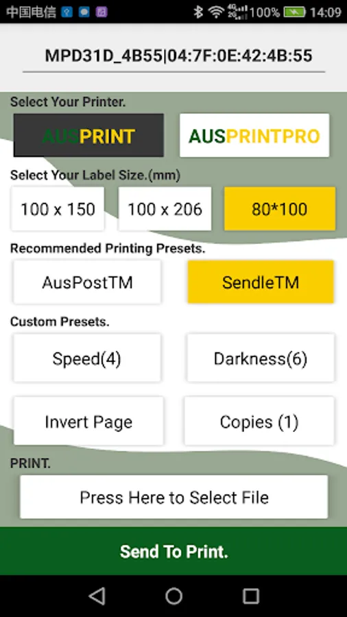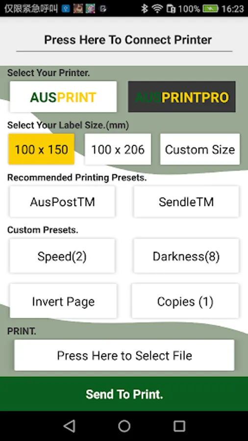 2. Set the default label print size to 100 x 150mm. Labels of other sizes are optional.