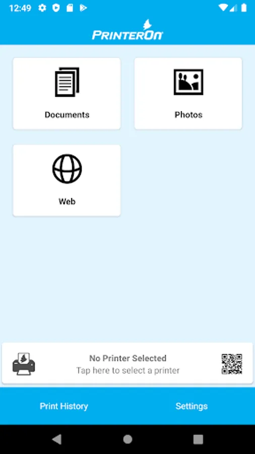 • The PrinterOn App can be accessed and used to print from other applications that provide access to documents