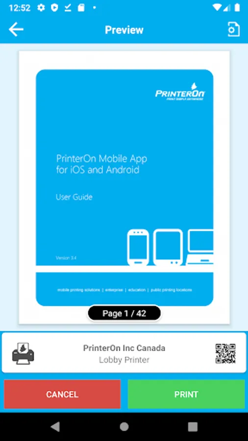 • Print from your phone or tablet to any PrinterOn-enabled printer regardless of network or location