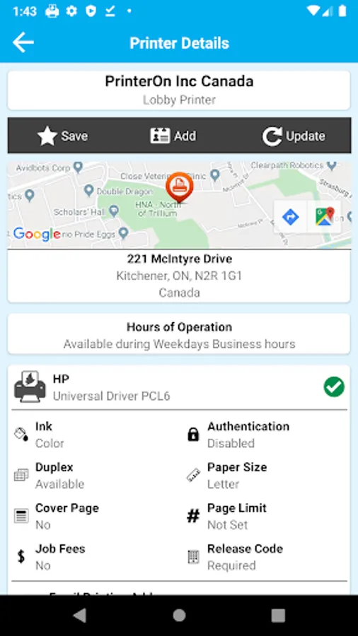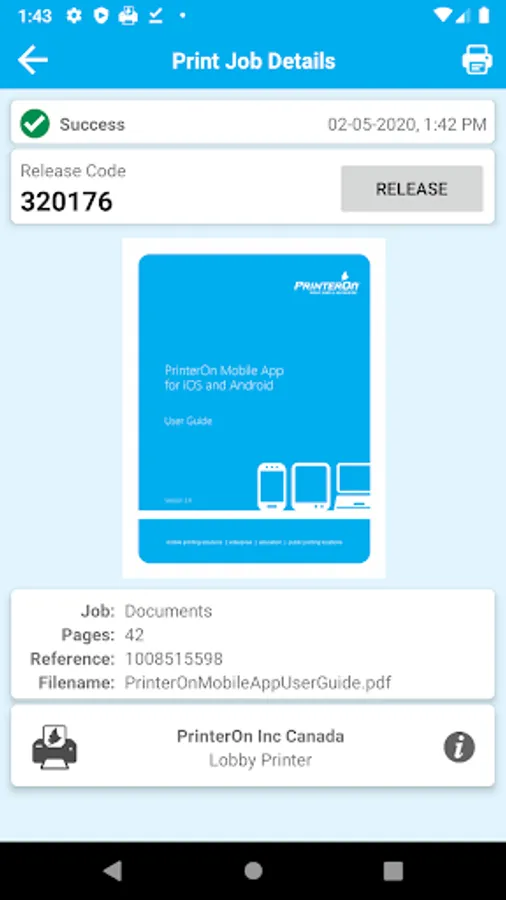 The PrinterOn Mobile Printing App lets you easily search for and print to any PrinterOn-enabled enterprise or public printing location all from one application.
