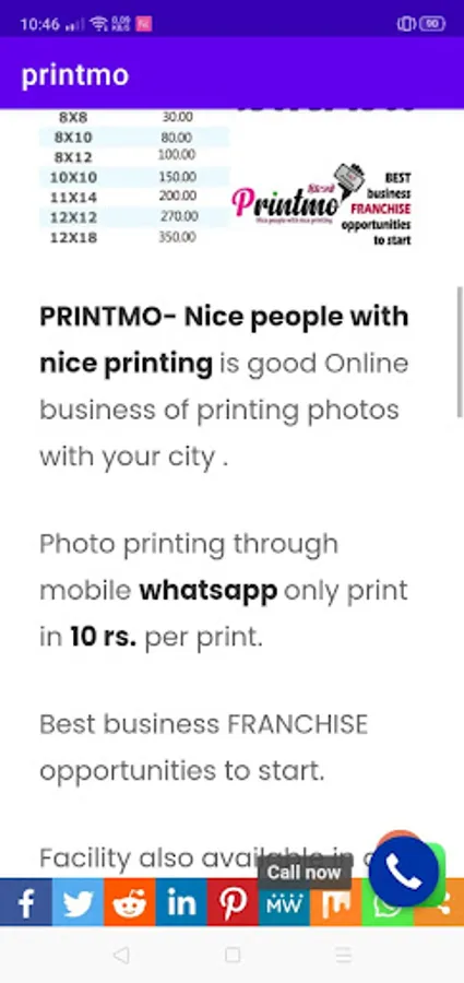 The app is about printing .Good online business with photos . you can also print photos of your city