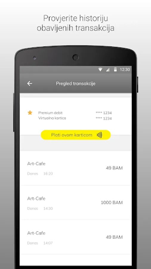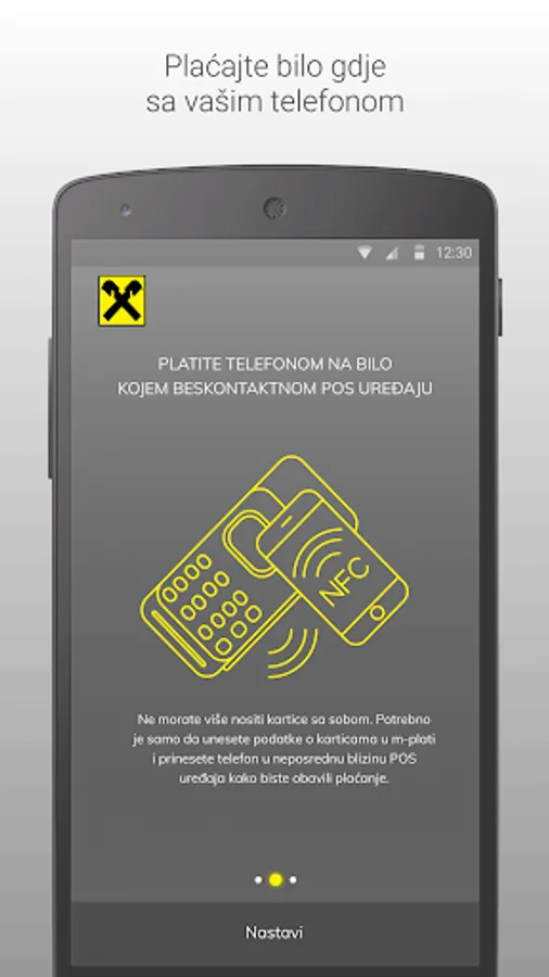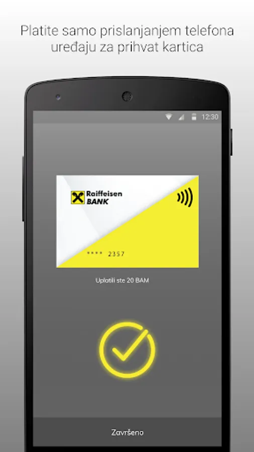 Easy payments. Make small purchases below 30 BAM by unlocking the phone and placing your phone over the POS terminal.