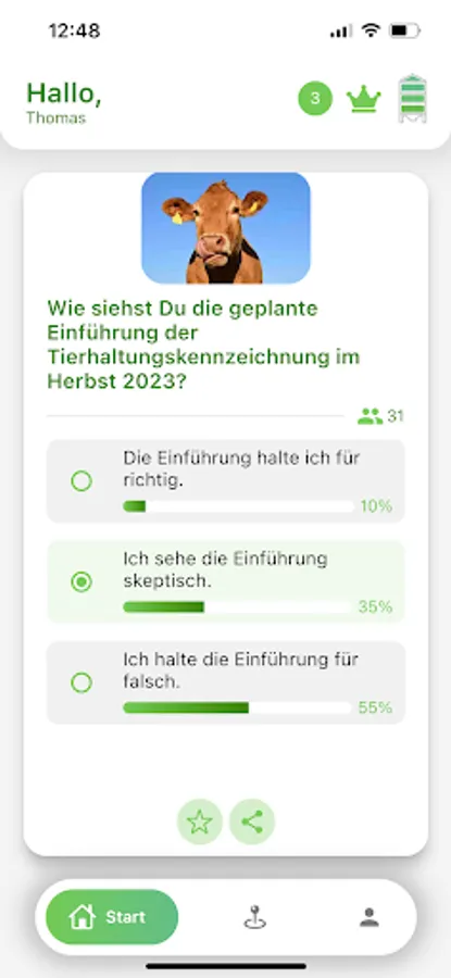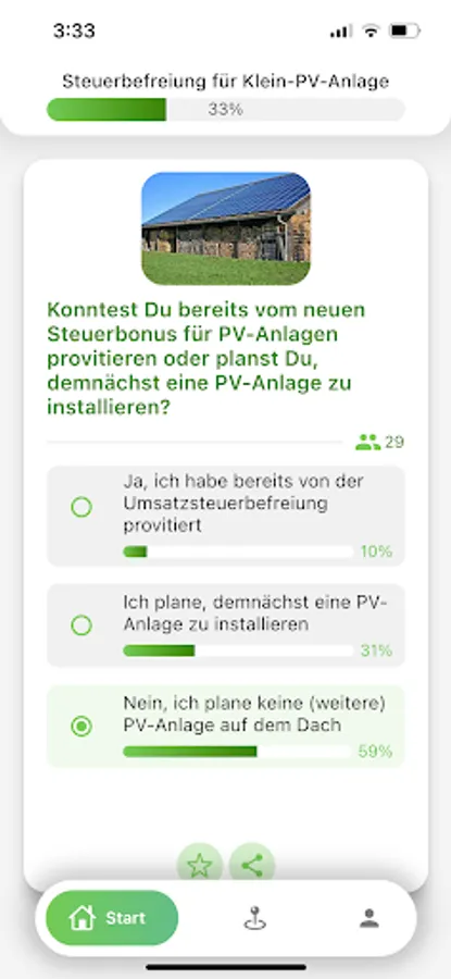 - Rückmeldung erhalten, wie andere Personen prozentuell abgestimmt haben