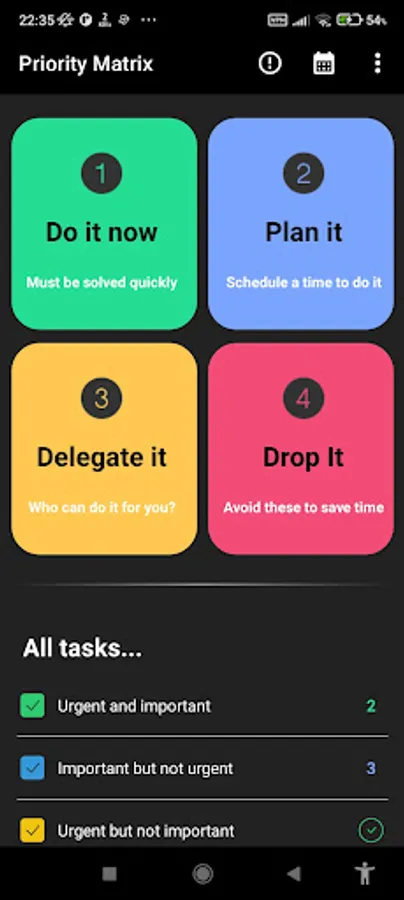 To prioritize your task items, you must categorize each task on your list into one of these four categories.