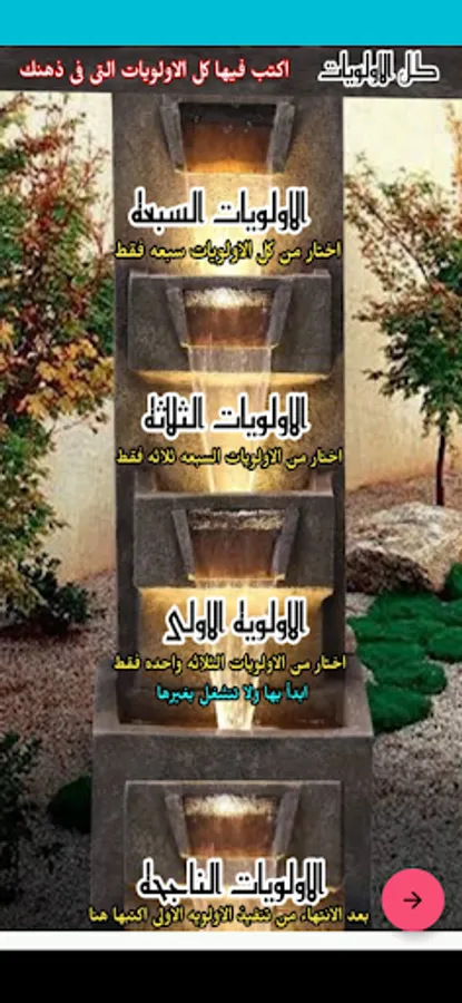 The seven priorities section is sorted from all the priorities, as it is the most important of them, and it is like filtering rain into a slightly smaller container.