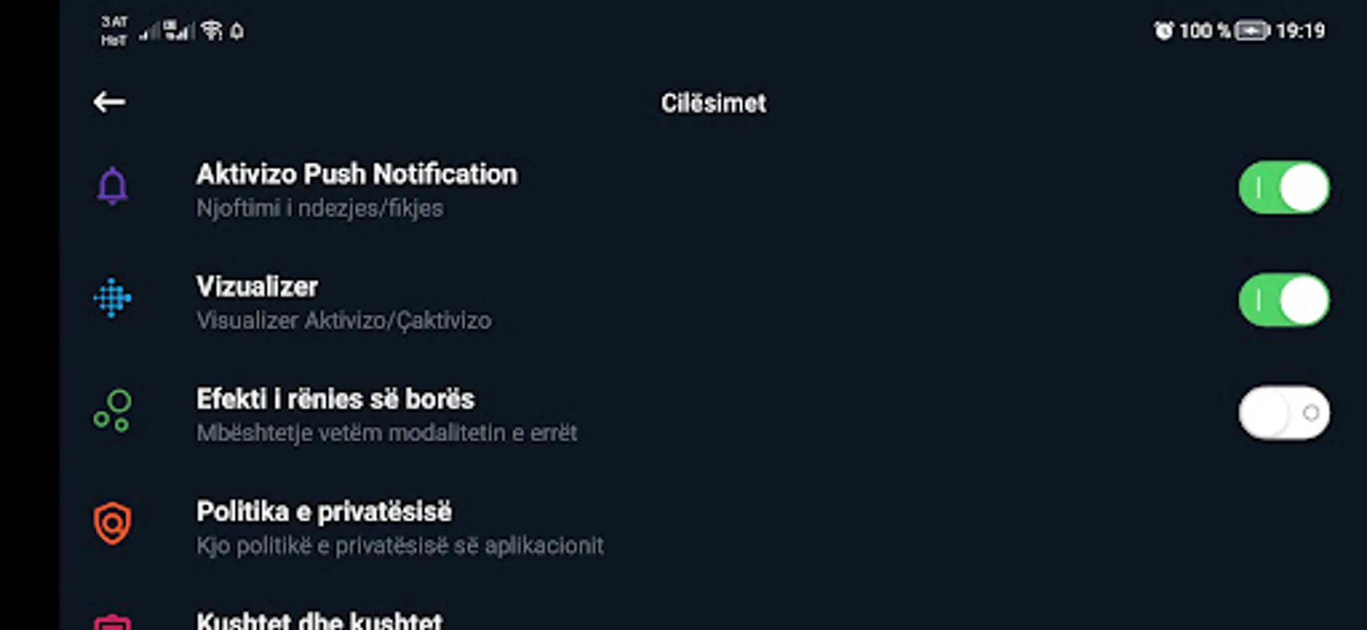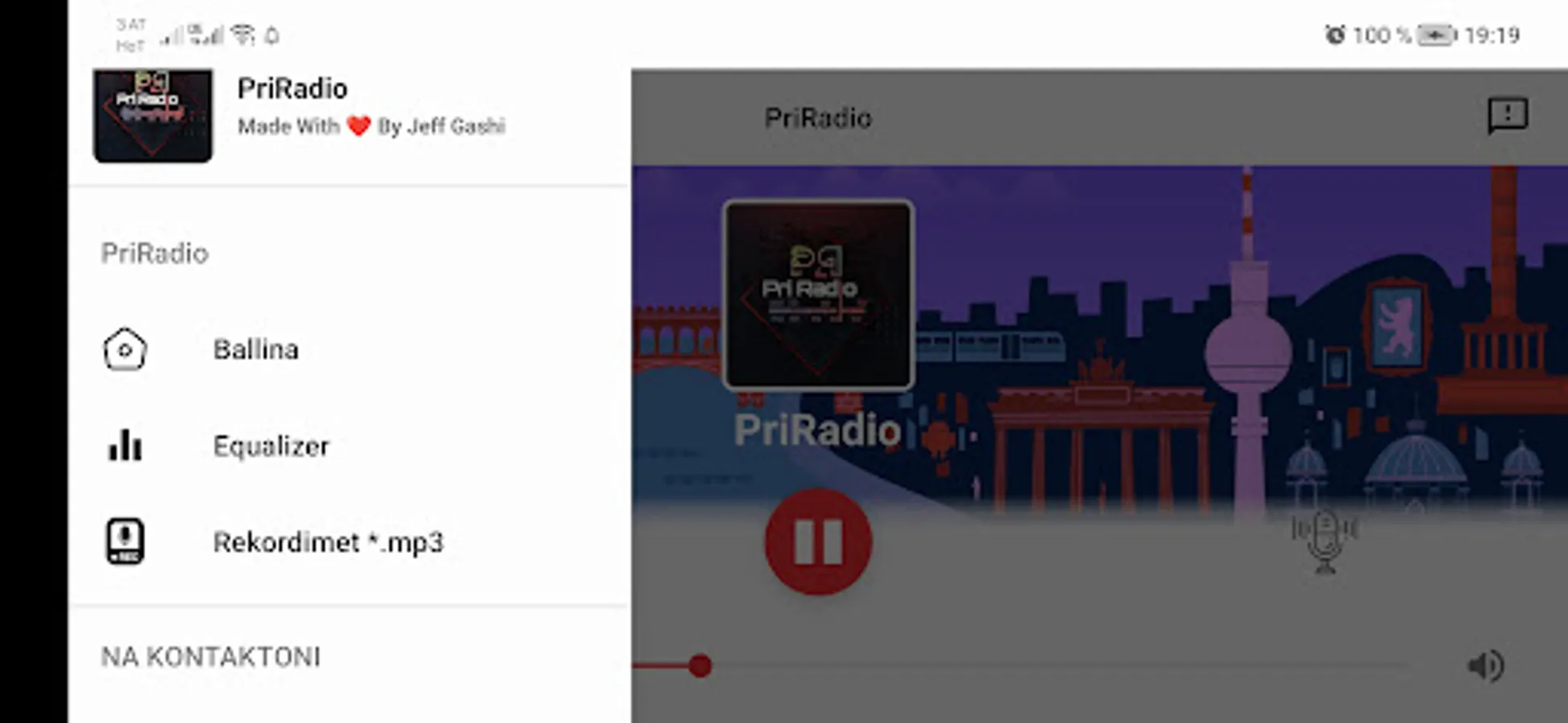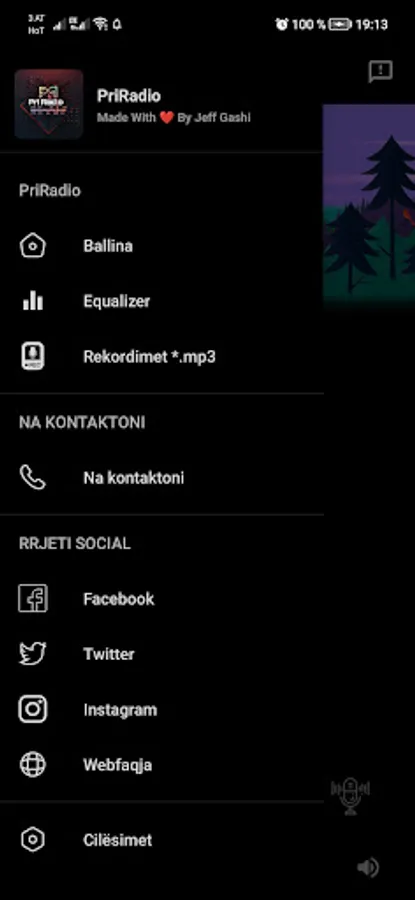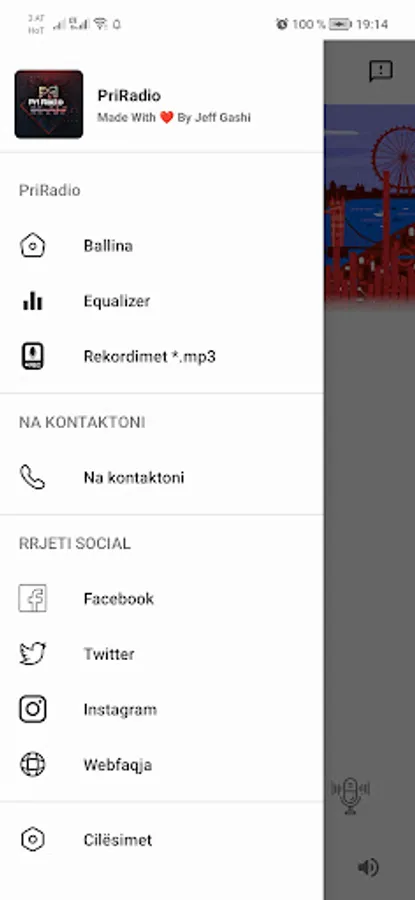 Priradio App is a complete radio application in the Albanian language that allows users to listen to PriRadio's radio station. What made this application more innovative is that users are given the opportunity to record live in qualitative *.mp3 format so that later they can listen to the program or the recorded music as mp3 on other devices such as USB or PO, android atuo Radio etc. The application also has a Sound Equalizer and a Graphical Visualizer. The application also has Theme Design in 4 different types which can be found under the Settings menu: Classic, Dark Gray, Dark Blue, and Dark Themes.