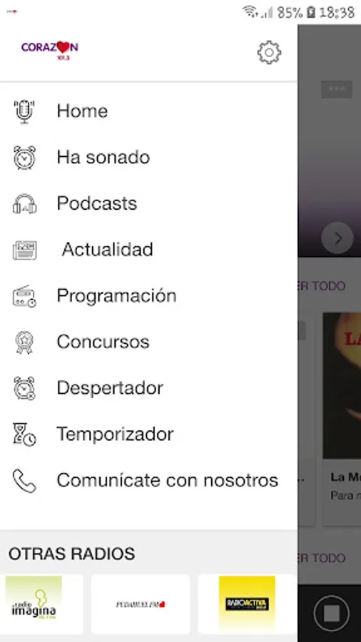 In this application you will have: direct sound, list of favorite songs, news, podcasts and all our programming.