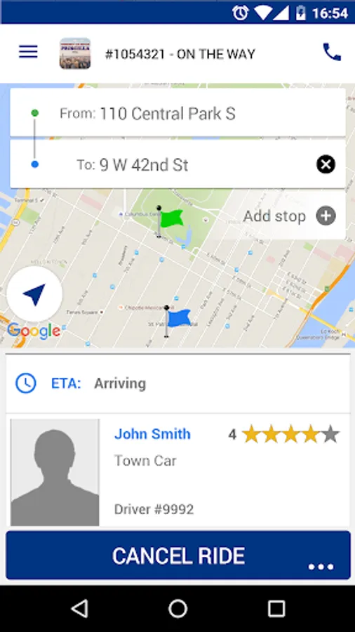 • Driver location and ETA