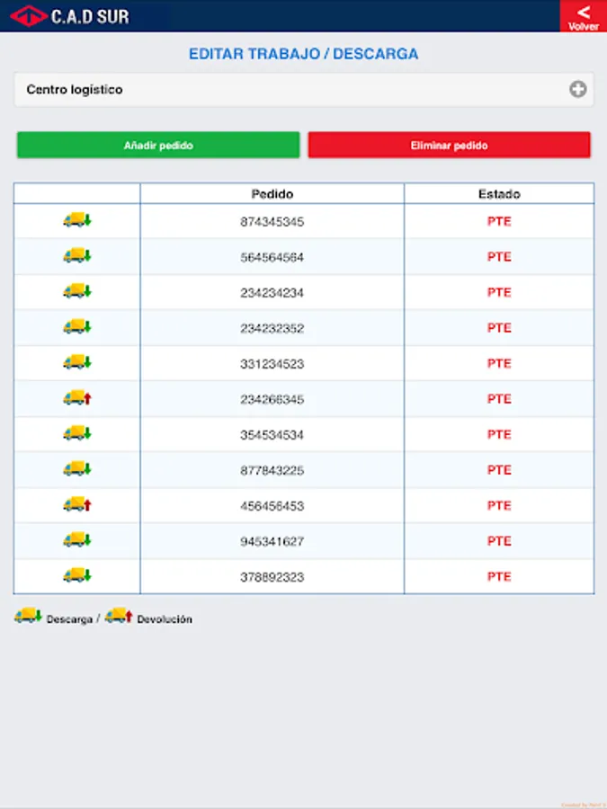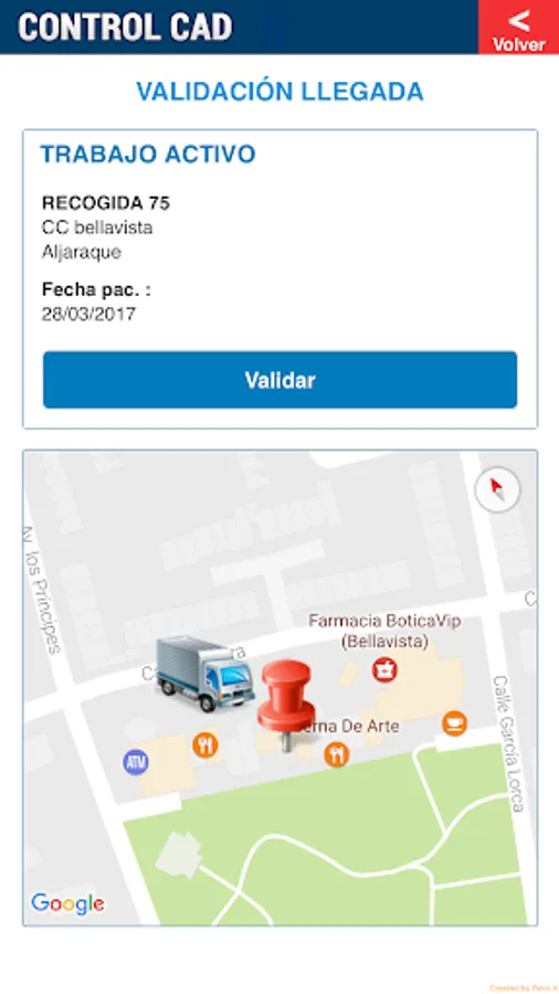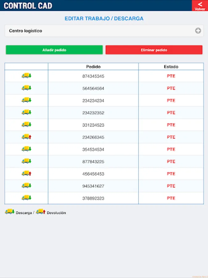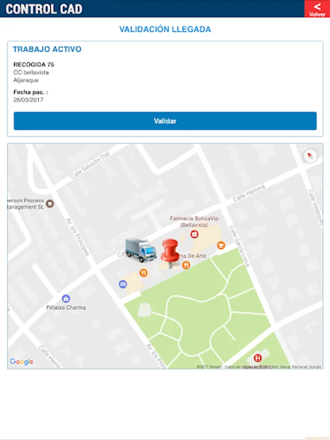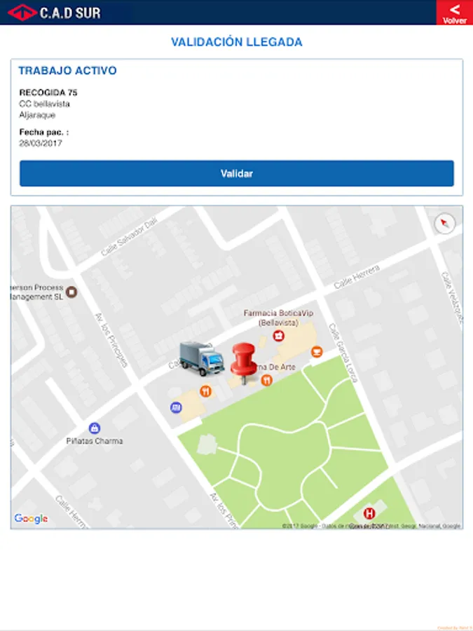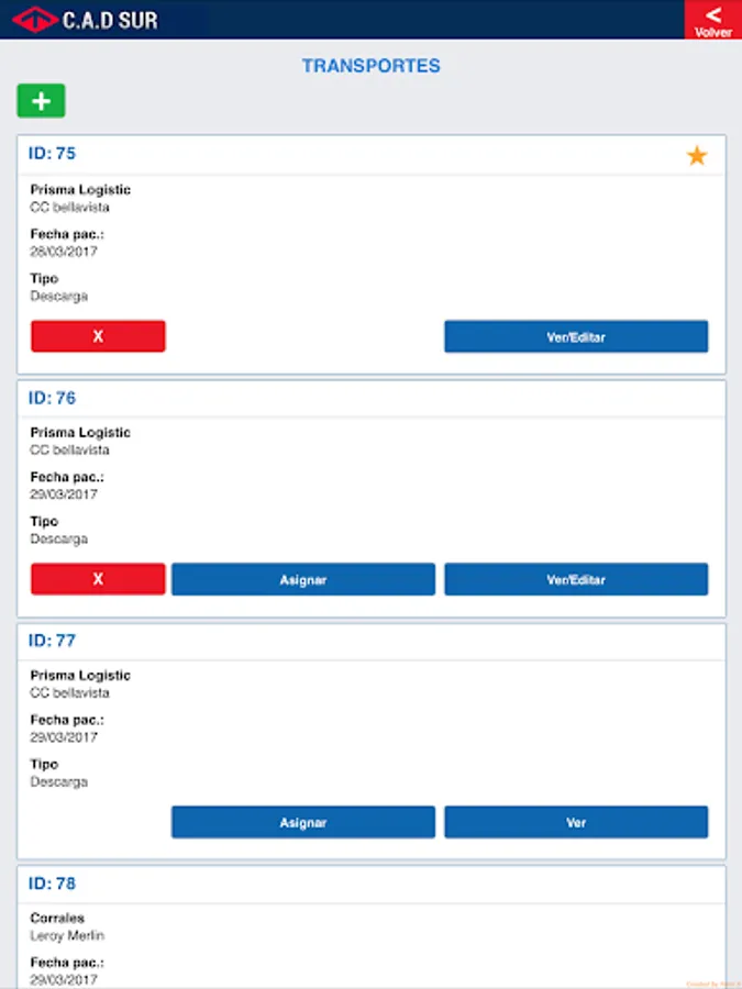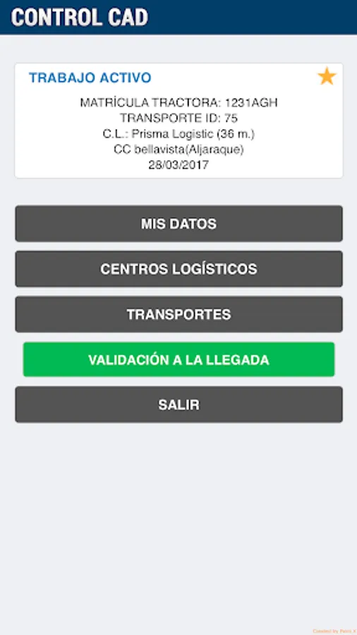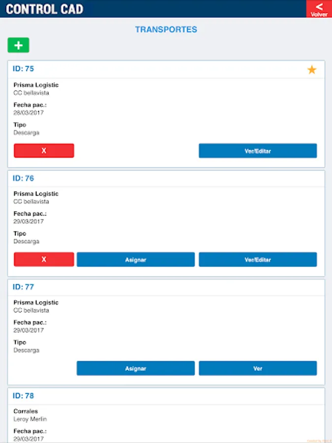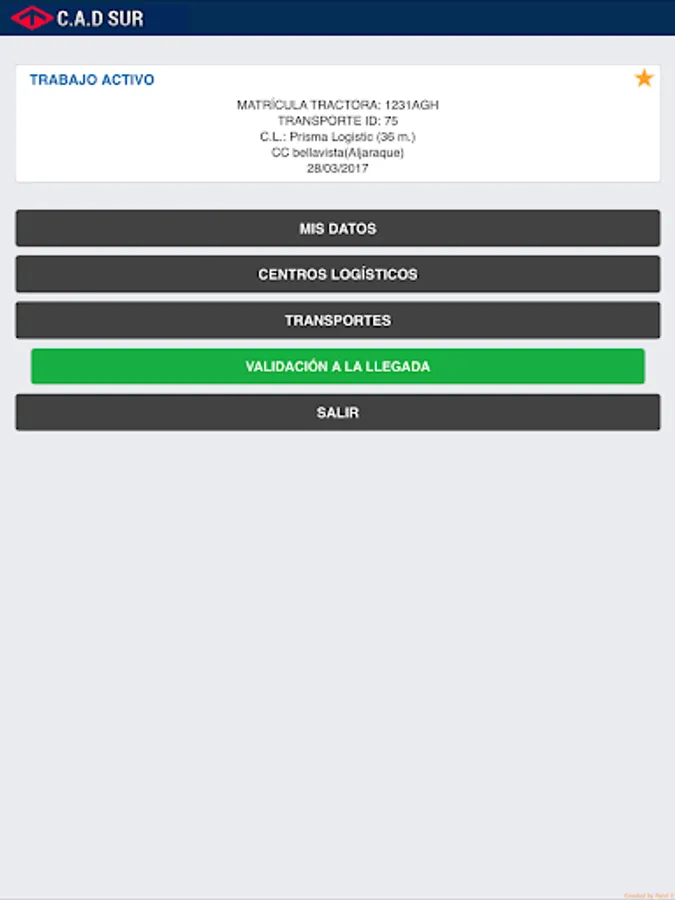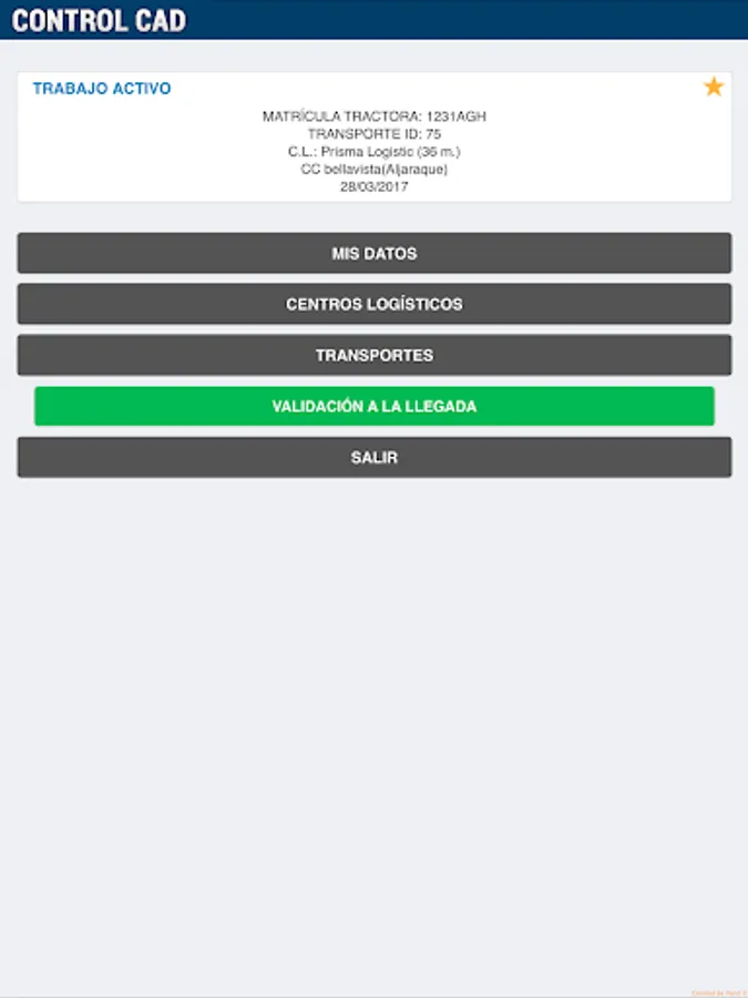 Application for management, control and validation of goods and gluing of transport logistics centers.