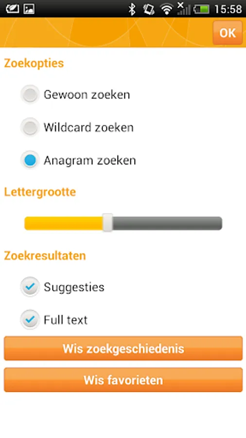 • Full-text search result: search for a word and you immediately see all the occurrences of it in the dictionary, in both translation directions, in all example sentences and translations, complete and clear. This way you choose the right word in every situation.