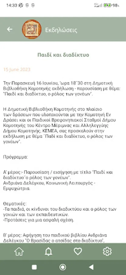 Η παρούσα εφαρμογή παρέχει πληροφορίες σχετικά με την Τσανάκλειο Σχολή η οποία εδρεύει στην Κομοτηνή. Η σχολή ιδρύθηκε από τον Νέστορα Τσανακλή και εγκαινιάστηκε ως Αστική Σχολή Αρρένων το 1908. Μέσα από την εφαρμογή ο χρήστης μπορεί να διαβάσει πληροφορίες για διάφορα μνημεία, ιστορικά κτήρια και σημεία ενδιαφέροντος, να παρακολουθεί νέα και προσεχείς εκδηλώσεις και να αποκτήσει πρόσβαση σε πολυμέσα (εικόνες, βίντεο, κλπ.).