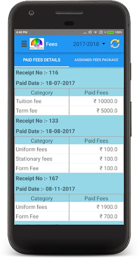 •Fees: Complete Fee details of a student is available to parents directly on their smartphone. Details of paid fees and pending fees makes job of parents and school easy.